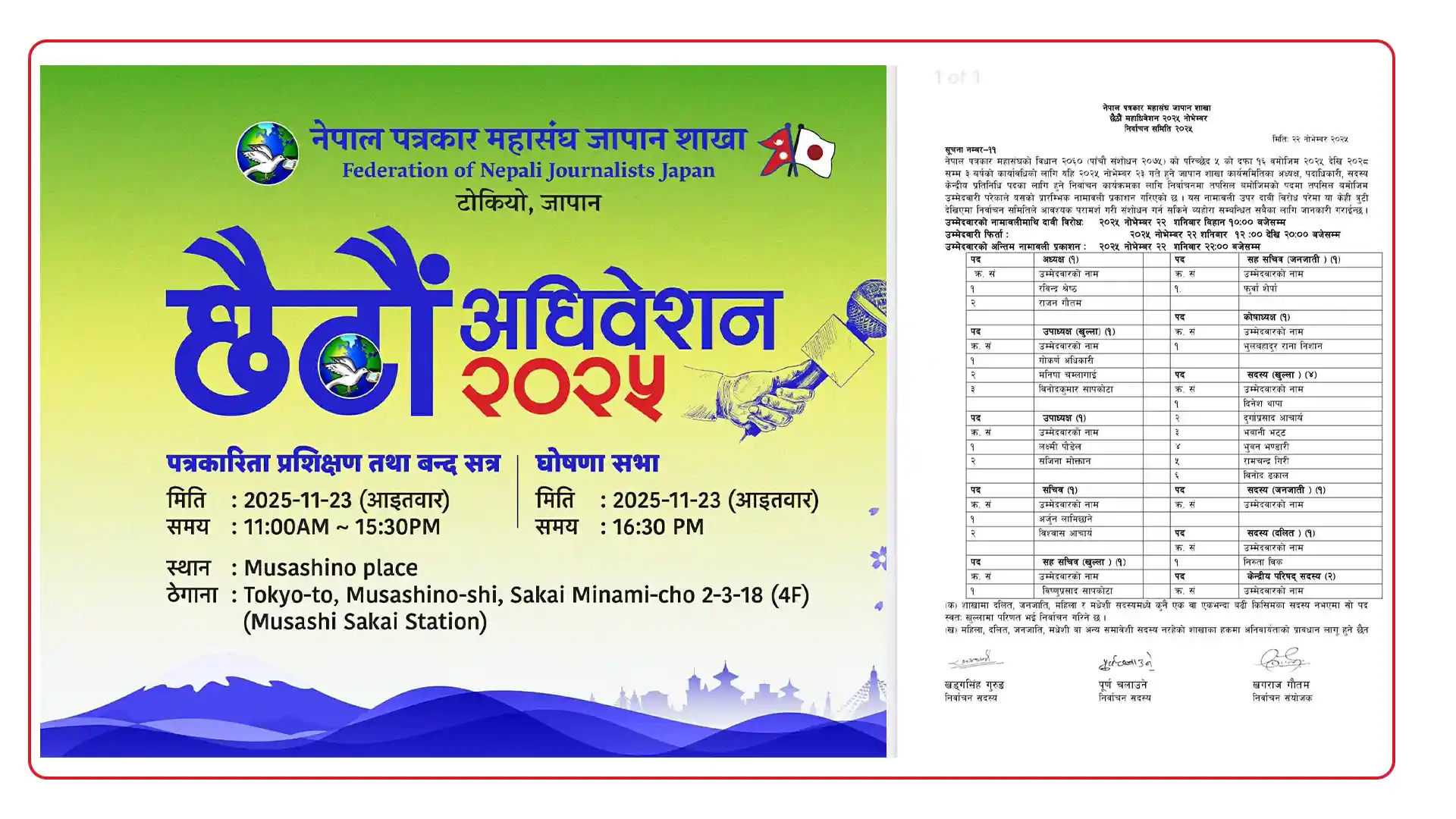 नेपाल पत्रकार महासंघ जापान शाखा: छैठौँ अधिवेशन – नयाँ नेतृत्व छान्न आइतबार मतदान